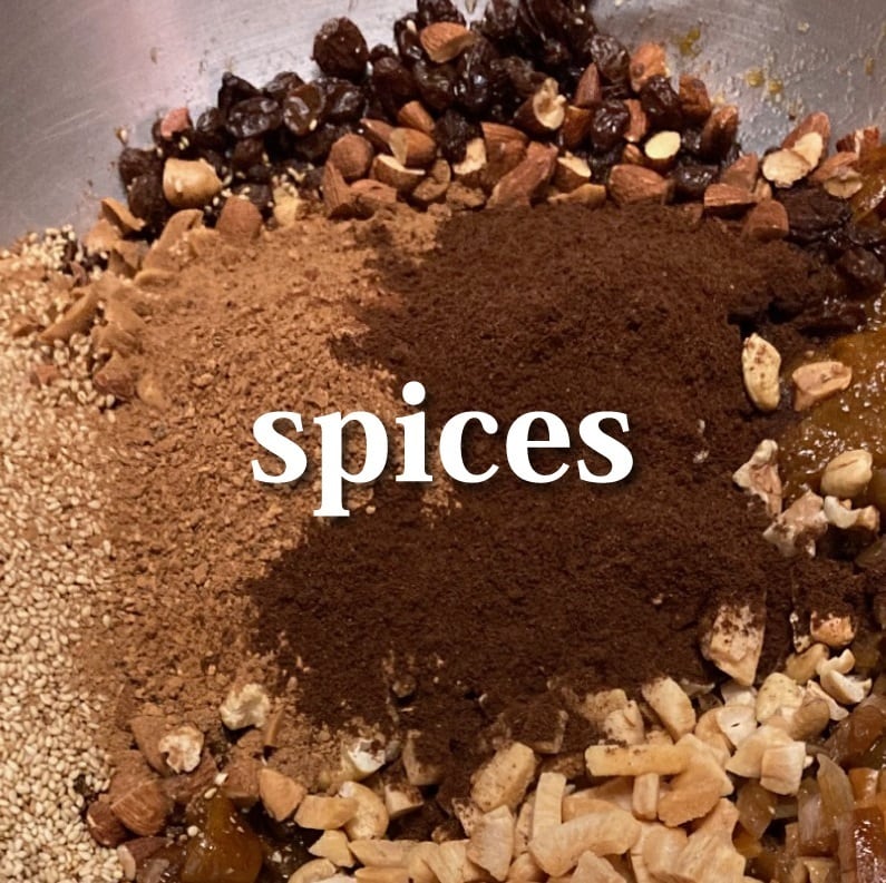 焼き上げられたシュトーレンは、あつあつのうちに自家製フルーツリキュールに浸してココナツオイルをぬりこみブラウンシュガーと粉糖でくるみ、密封。このまま時間をかけ熟成させることで、ドライフルーツから、じ~んわりと生地に滲みわたり、芳醇なかおりが増していくのです。